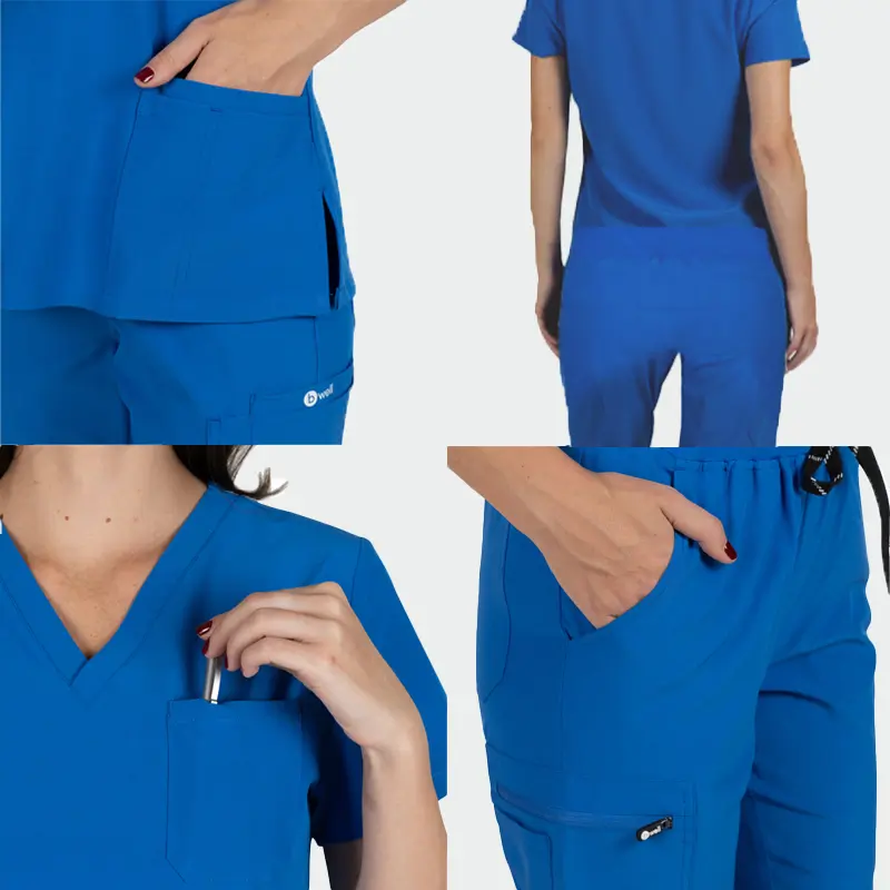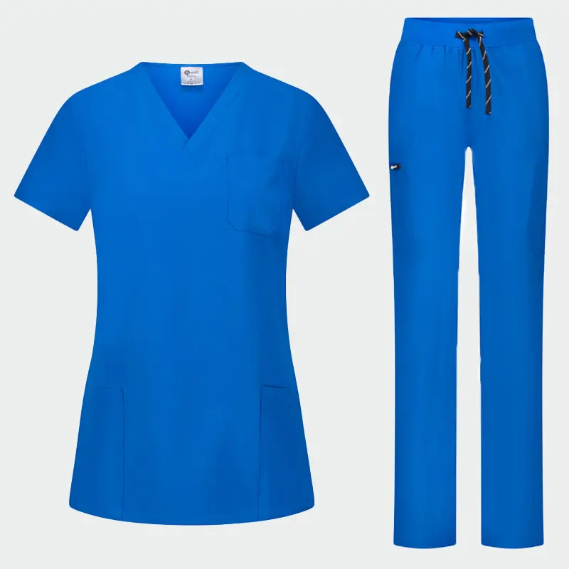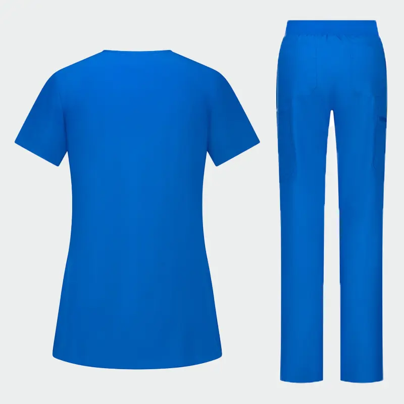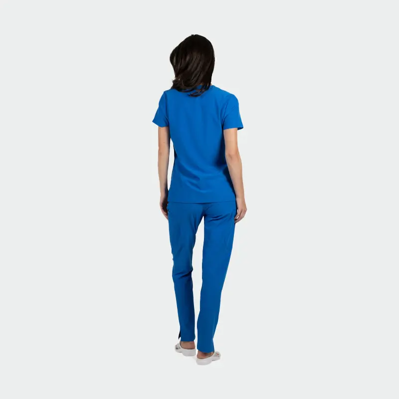 Елегантен дамски комплект изработен от мека и еластична материя, съставен от 94% полиестер и 6% еластан, задоволяващи изискванията на всяко медицинско лице, което обича свободата на движение по време на работа.