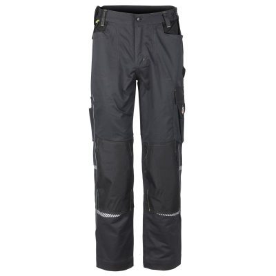 Сигнален работен панталон с анатомична кройка, изработен от водоотблъскваща софтшел материя с топъл микрофлийс от вътрешната страна.