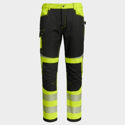 Сигнален работен панталон с анатомична кройка, изработен от водоотблъскваща софтшел материя с топъл микрофлийс от вътрешната страна.